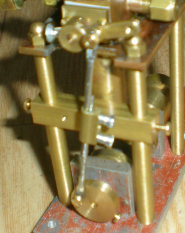 |  La tête de ces vis est soudée à l'étain sur les bielles menantes , un écrou se bloque en fin de filetage et permet le mouvement : |