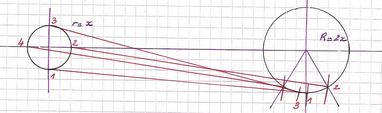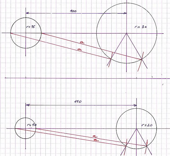 |  | | Une propriété intéressante car, même en modifiant l'entraxe, ou en augmentant les diamètres, on obtient les mêmes propriétés si on respecte r = x et R = 2 x. |