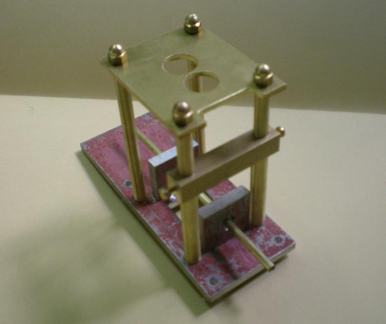On aperçoit, en partie avant, deux tubes de laiton glissés sur les précédents : ils serviront à caler à la bonne hauteur le support de l'axe du "point fixe". |