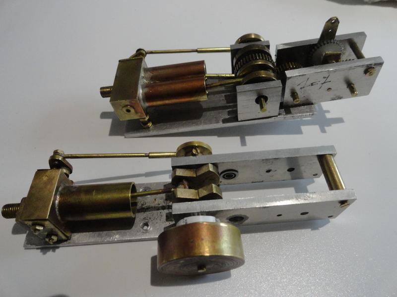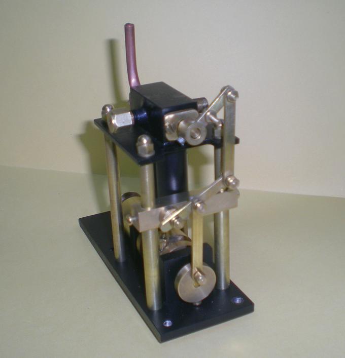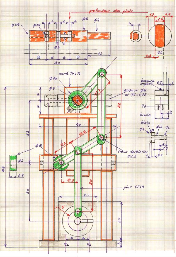 les essais | Ils ont eu lieu d'abord à l'air comprimé : . avec une bielle provisoire (bouts de baleine de parapluie et domino) . avec la "tringlerie" complète.