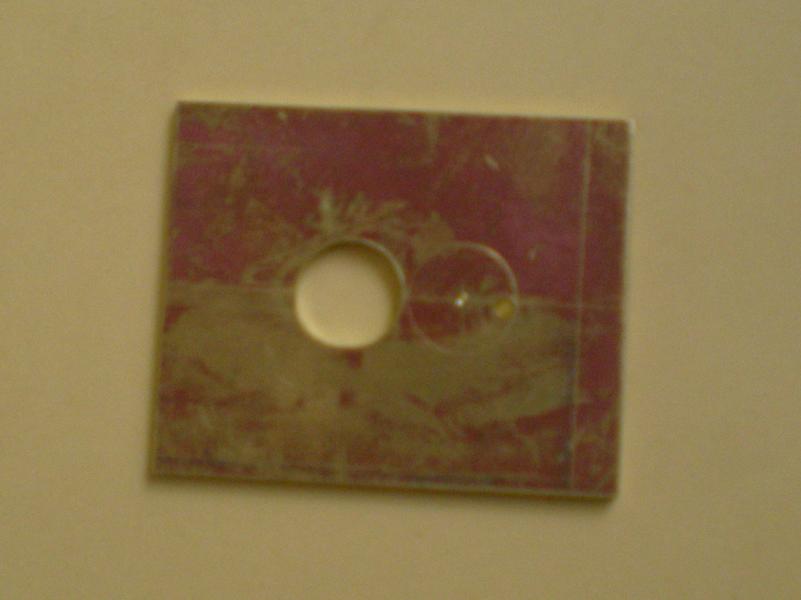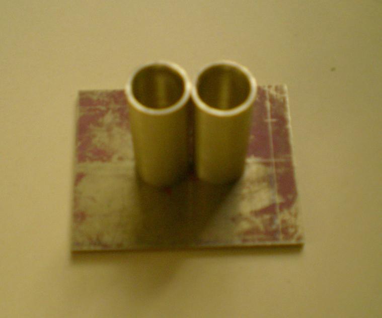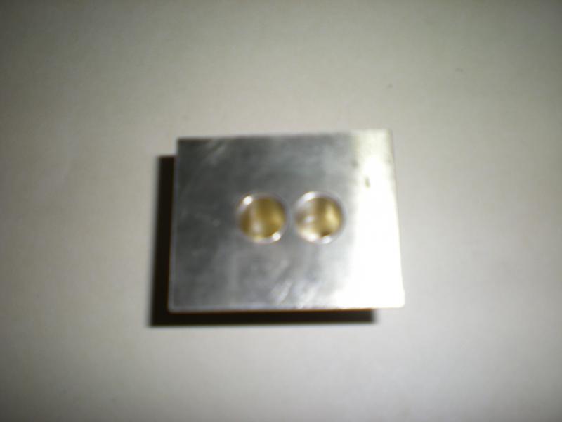 Vue de dessus. Dommage pour cette photo, mais on distingue (difficilement je l'accorde) le bord supérieur des cylindres qui sont à 0.5 mm du dessous du support. On ne peut pas les amener à ras car, au ponçage on risquerait de creuser la plaque support qui doit être parfaitement plane. |
