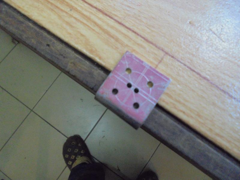 | Traçage en bout puis perçage. Ne pas se tromper pour l'axe comme je l'avais d'abord fait ... |
