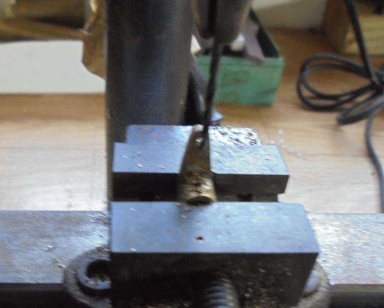 | La pointe du biseau devra venir se placer exactement dans le trou déjà percé en bout de boisseau (version verticale avec aiguille de maintien). |