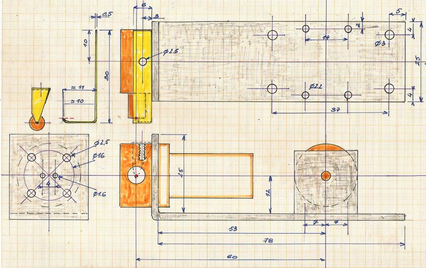 le montage de la version horizontale |  La réussite dépendra du pliage de la tôle d'alu de 2 d'épaisseur qui servira de support aux éléments démontés.