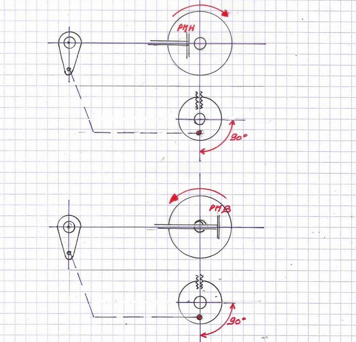 Les cotes sont issues du moteur précédent. Il faudra prévoir un système de maintien du boisseau (en haut à gauche sur le croquis) et modifier l'emplacement du levier de commande de ce boisseau. |
