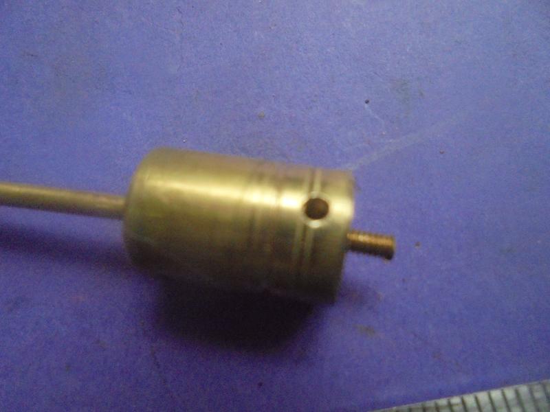 Pour l'instant, le piston le plus simple. Le téton sera réglable en hauteur et il sera bloqué par une vis sans tête. Pour faciliter le remontage percer ce trou de serrage à 90° de l'axe de la bielle pour que la chape soit bien verticale. |