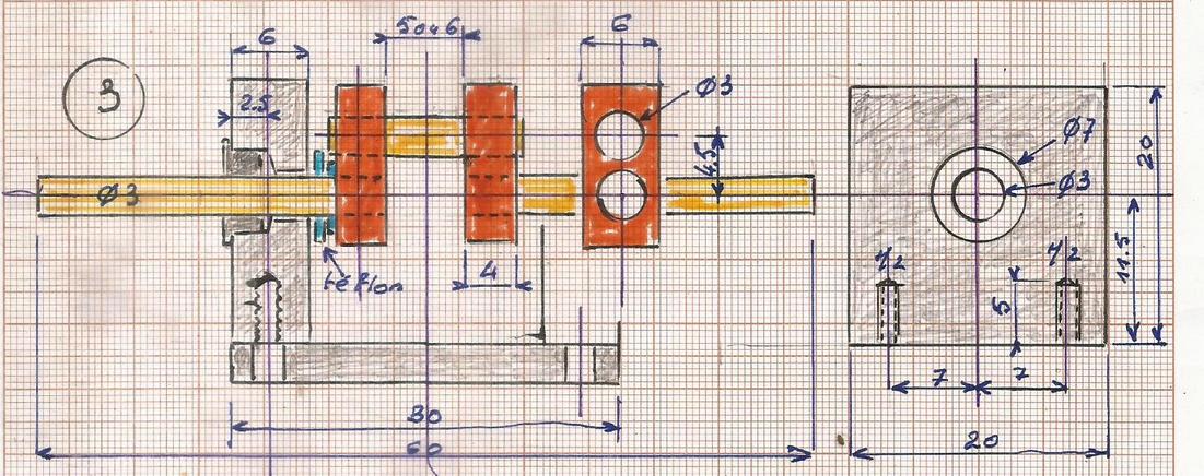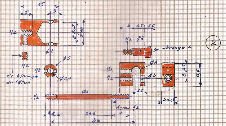 Prévoir une vis de 2 pour le blocage du porte-bille. Quand le bon réglage sera trouvé, on pourra passer à la soudure à l'étain. |