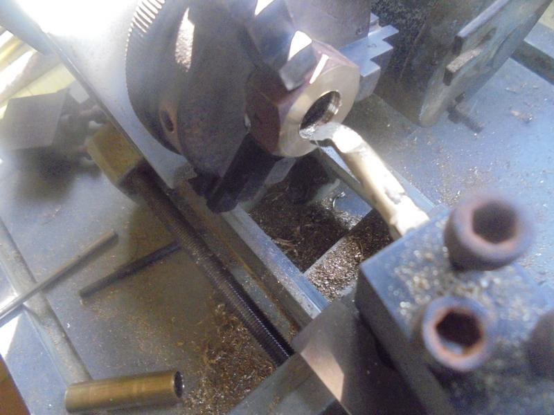 Il aurait fallu un alésoir de 10 ... A défaut, on passe la queue d'un foret de 10 puis d'un rond en laiton sur lequel on peut étendre un peu de Miror. |