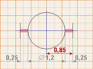La jonction de ces trous (double effet) peut se faire à 3.5 ou 4 (plus facile à tracer) avec des trous de 2.5.