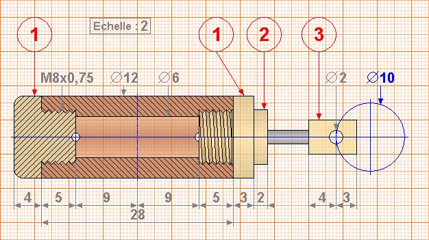 | En laiton :on utilise du rond de 12 (percer à 5.8 puis aléser à 6) et de l'hexagonal ainsi que du rond de 6 et de 2 ainsi que du plat de 5 (le 4 peut aussi convenir).