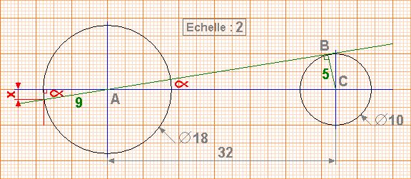 dans ABC rectangle, AC² = AB² = BC ... et AB = 31.607 tang α = 5 / 31.607 et α = 9° tang α = x / 9 et x = 1.42