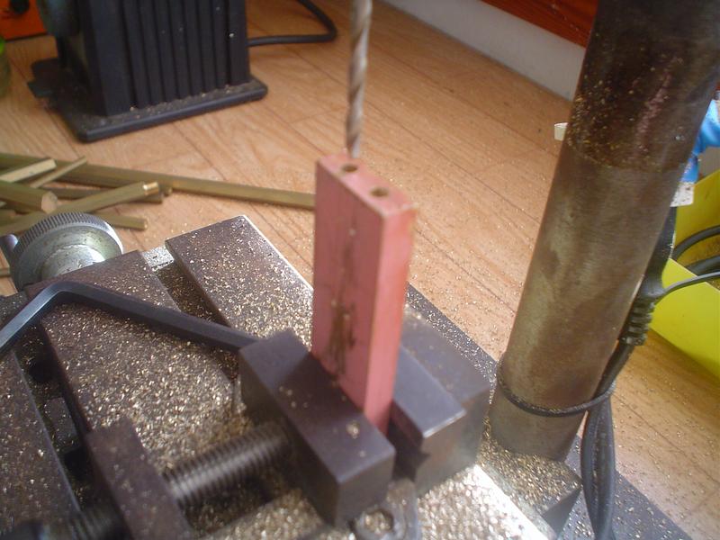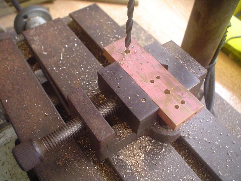 | Perçage ensuite des autres trous : axes, alimentations basses et hautes. |