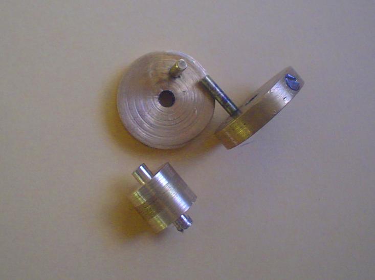 L'axe (inox de diamètre 3 avec 2 encoches décalées à 90°) qui passe à travers ce volant doit glisser facilement dans ce volant amis aussi dans les roulements sinon on ne pourra pas monter les disques. En effet, on glisse l'axe en ne laissant déborder qu'1 mm et on glisse le volant dont le maneton a été introduit dans la chape ... puis on glisse à nouveau l'axe pour dégager le passage au second volant.