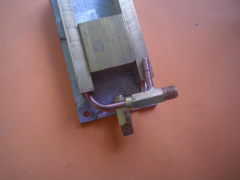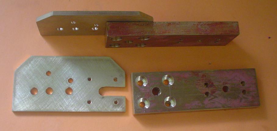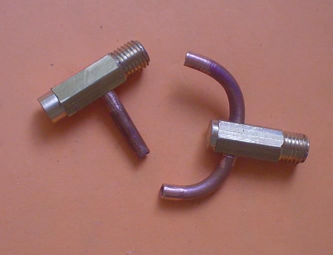 Elles sont réalisées en cuivre de 2 x 3 et les raccords (filetés à M6) sont en hexagonal de 6 ou 7. Lors de la coupe, prévoir 10 mm entre le haut du bâti où elles sont soudées (étain) et leur axe, sinon l'un des raccord viendra cogner dans un cylindre ...