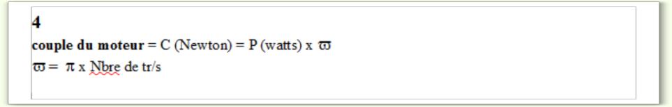 La valeur obtenue est celle d'un couple minimum et, pour mes calculs qui ne sont qu'indicatifs, on peut imaginer qu'il représente le couple résistant