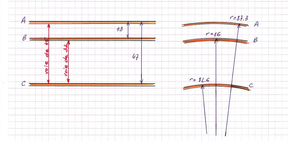 Par contre le montage de chaque portion est intéressant (on pourrait le faire soi-même) car, dans une courbe, les rails restent parallèles. Le problème sera celui de la coupe à la bonne longueur pour les raccordements. |