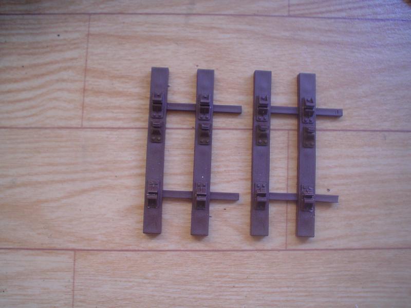 Les traverses sont assemblées 2 par 2 : on les glisse sur les rails et on les pousse pour su'elles se touchent. Si on vent cintrer les rails on peut les laisser ainsi et les traverses vont s'écarter d'un côté : elles seront alors trop nombreuses et il faudra en supprimer quelques-unes selon la courbe à obtenir.