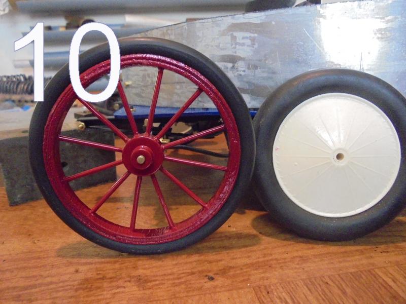 10 - les roues à rayonsQuand on regarde l'ébauche de la carrosserie, on voit que les roues sont trop petites pour obtenir un certain réalisme. On peut en fabriquer d'autres en s'inspirant de cet album - roue 2 |