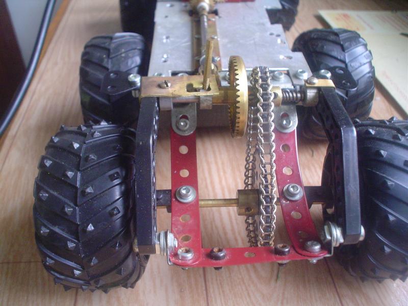 premier montage | | celui du camion Meccano pour lequel la liaison entre le moteur et l'essieu se fait en deux temps (aucune incidence de la mécanique d'embrayage sur l'essieu) et dont la réalisation complète se trouve dans cet | | album |