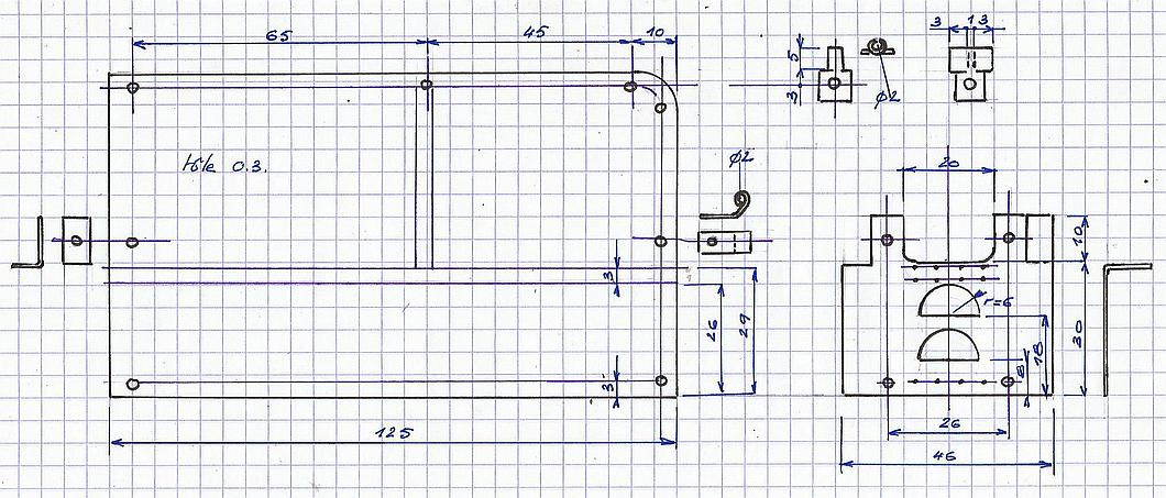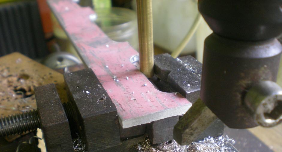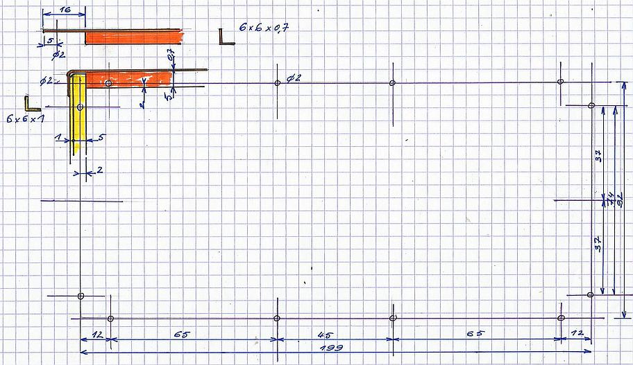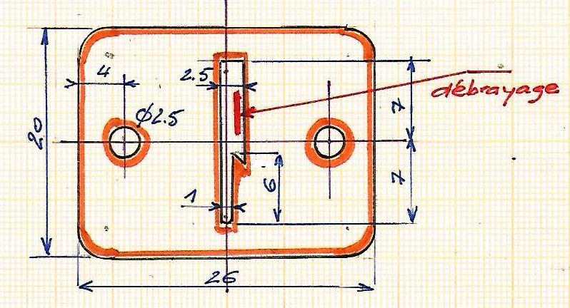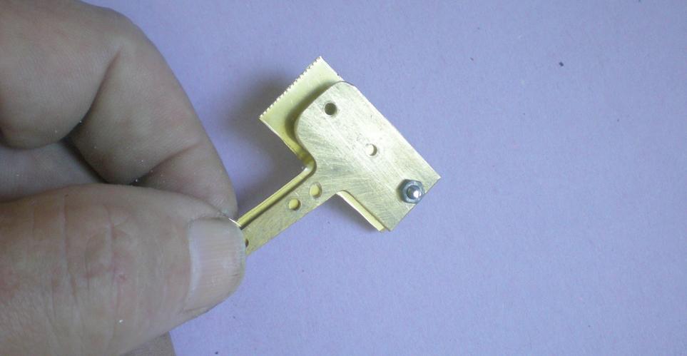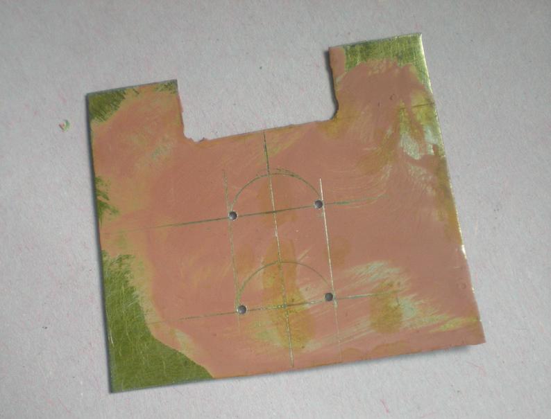 Découpe pour l'assemblage. Il faut percer à 2 avant de plier et ne pas oublier de recuire le bout de la cornière. |