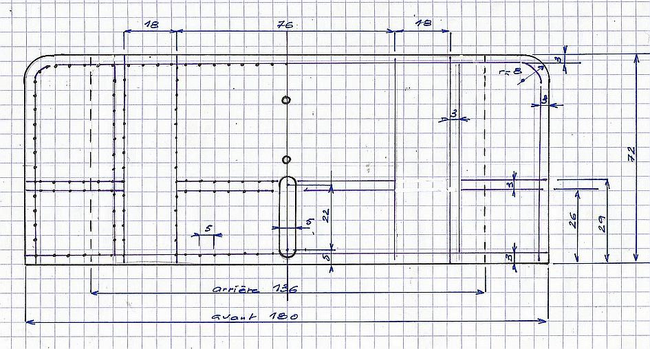 Dernier dessin ajusté aux dernières contraintes ... Le plancher est en alu de 2 d'épaisseur et les flancs en 3 mais on pourrait très bien utiliser du 2.