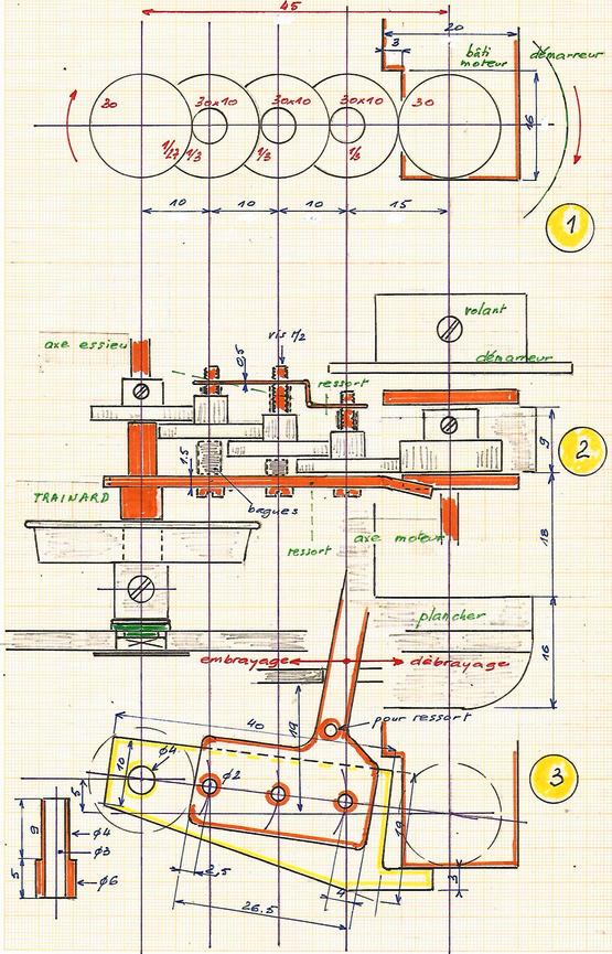 1 - quelques calculs pour arriver à la cote 45. Le rapport final sera de 27:1 et les roues ont l'air de tourner à une vitesse réaliste.
