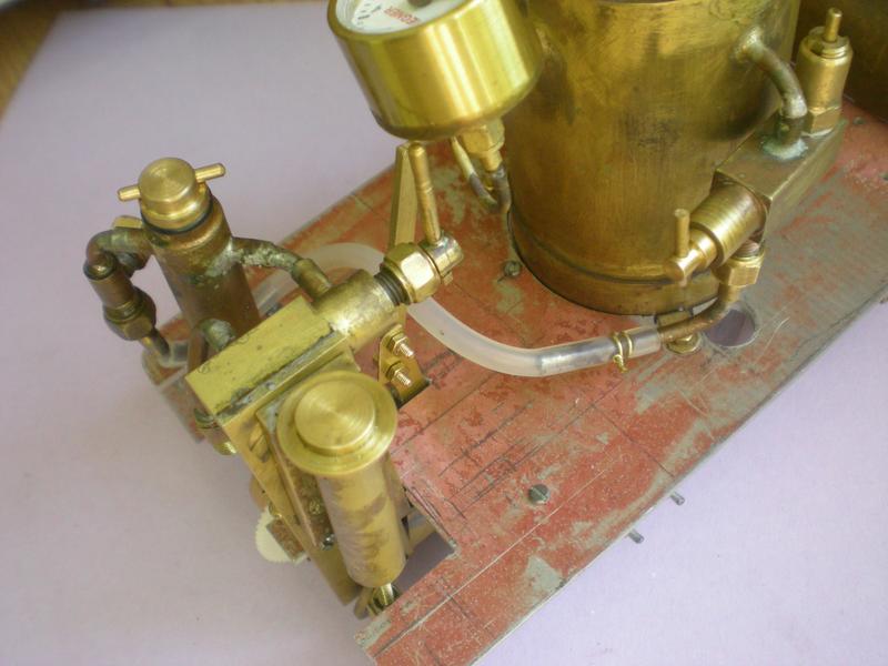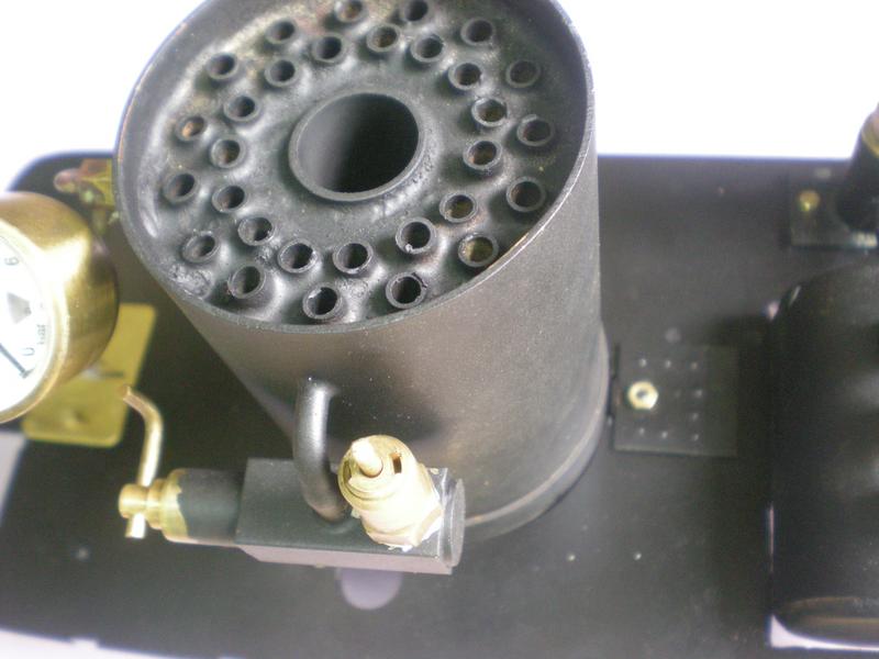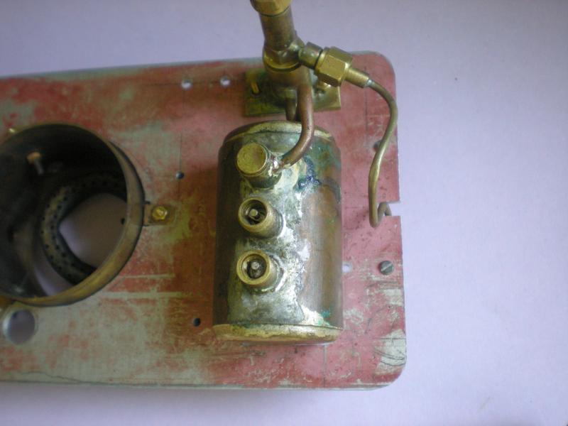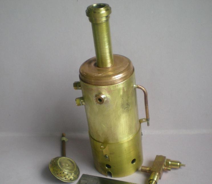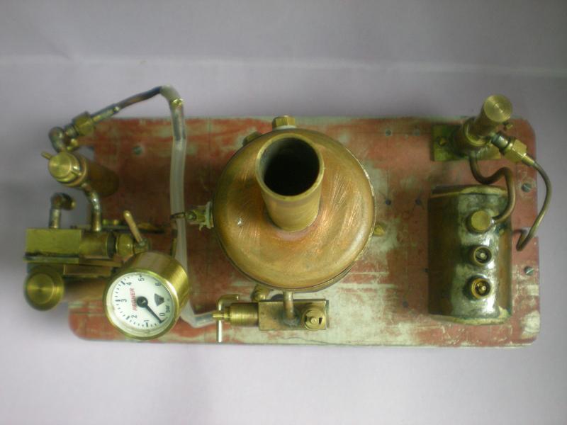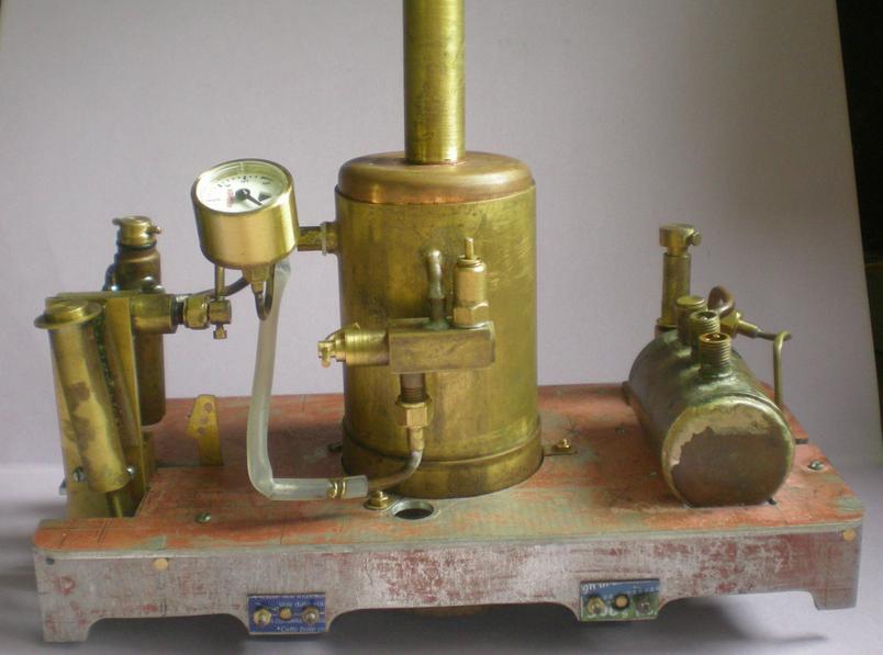 En réalité on va assembler sur un châssis des éléments déjà construits : . la chaudière verticale à tubes de fumée . le moteur oscillant de 0.7 cm3 avec vanne sur le bâti . le brûleur accompagné de son réservoir de gaz ... |