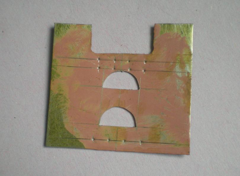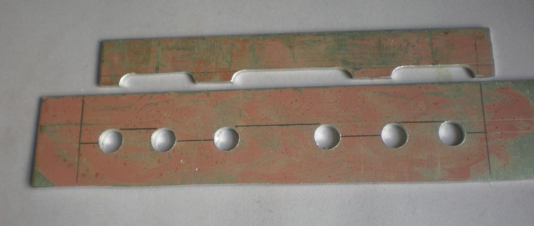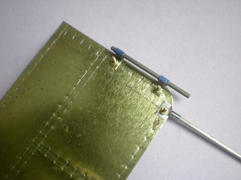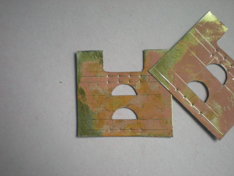 Pour les caler à l'extérieur, on peut utiliser de la tôle de laiton de 0.5 d'épaisseur ou de la tôle de récupération de 0.3. Percer tous les trous et découper par la suite. |