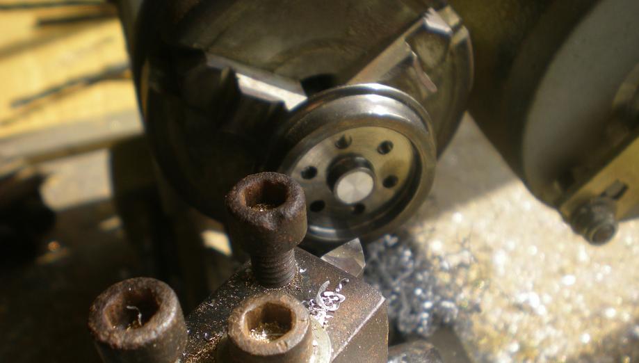 Il est possible dans du rond d'alu de 8 de confectionner les bagues en série. Ici perçage à 1.6 pour taraudage à M2.