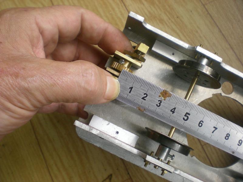 | Petite vérification utile que celle de la cote 45. Ce n'est pas très "mécanique" mais pas la suite, il y aura peu d'ajustement à faire pour que les roues dentées s'engrènent correctement. |