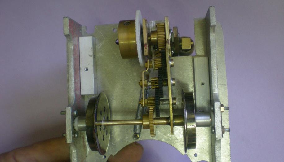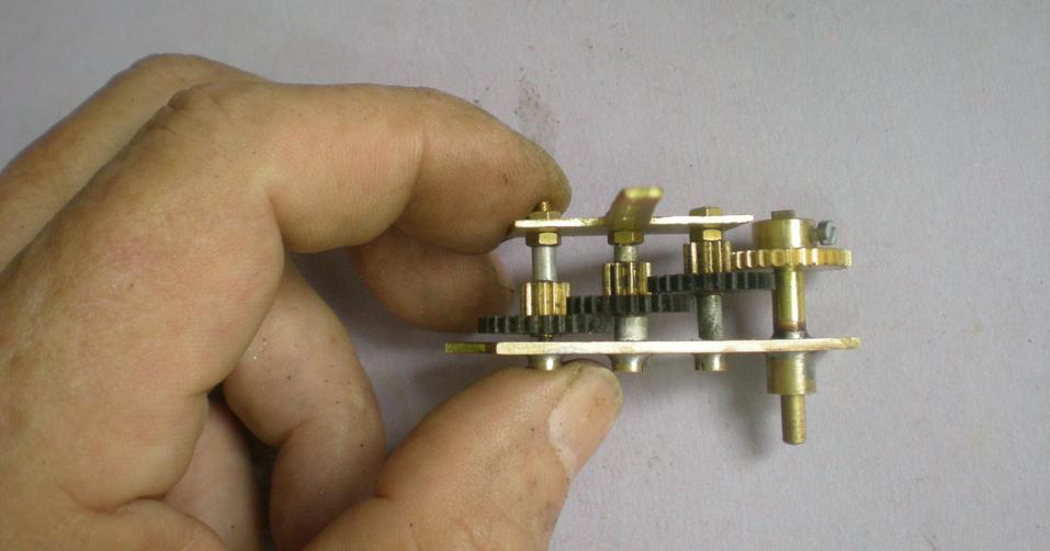 Bon, il est vrai que ce n'est pas très rapide ... Cependant il faudrait revoir tout le montage des engrenages pour obtenir mieux. Ici ma démultiplication est de 27:1, on pourrait probablement la réduire de moitié car le moteur de 0.7 est vaillant. Il existe aussi la solution de réduire le montage à 4 engrenages au lieu de 5, mais cela suppose de modifier le moteur pour que la marche avant se fasse ... vers l'avant !