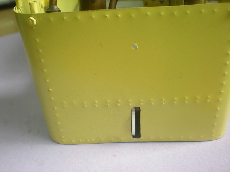 | Une fente à ne pas oublier, celle du passage de la roue dentée du démarreur : il faudra vérifier une fois la caisse posée sur le châssis que cela ne frotte pas. |
