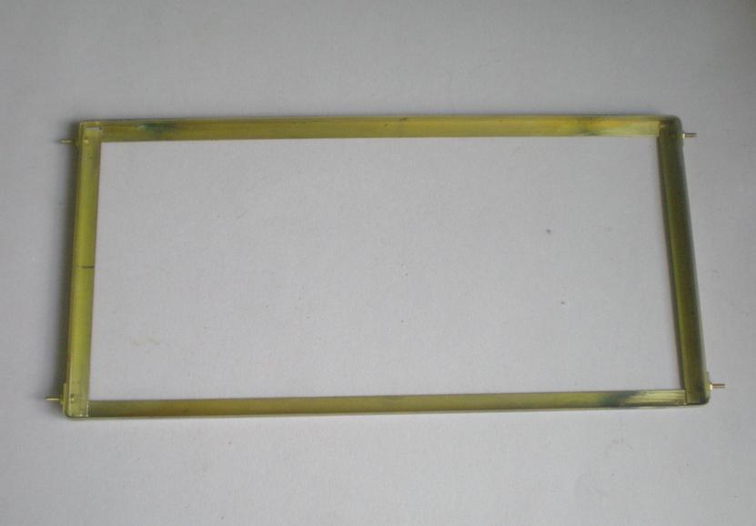 | Garniture qu'il faudra découper et percer pour qu'elle vienne se visser entre les montants latéraux tout en permettant le passage des supports des aimants et de la tête des vis maintenant le cadre. |