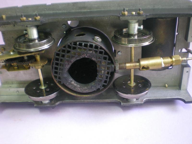 | Cette fois c'est tout bon, plus rien ne touche. Avant de glisser le traînard sur l'axe des roues, penser à fixer le ressort de rappel sur la contre plaque. L'autre extrémité du ressort est maintenue par une vis placée près de la chaudière. |
