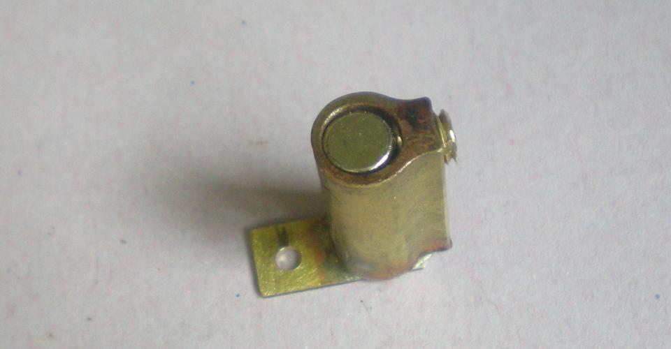 Pour maintenir les aimants, on peut utiliser de gros dominos qui ont un diamètre intérieur de 5.3. L'aimant sera bloqué par une vis M4 à la partie supérieure . |