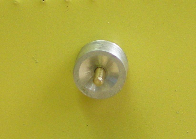 | Vue de l'extérieur. Une idée non réalisée : faire en sorte que cela dépasse le moins possible à l'extérieur en réduisant la hauteur de la vis. Par la suite, c'est l'écrou qui apparaîtra. |