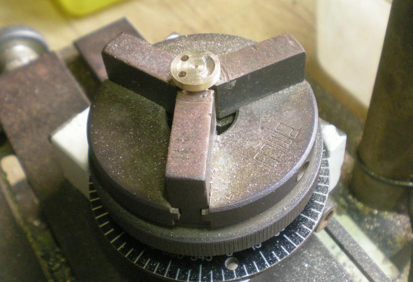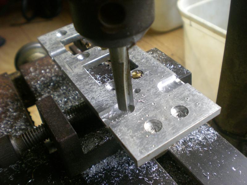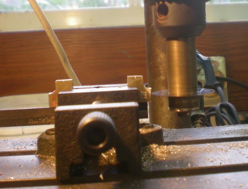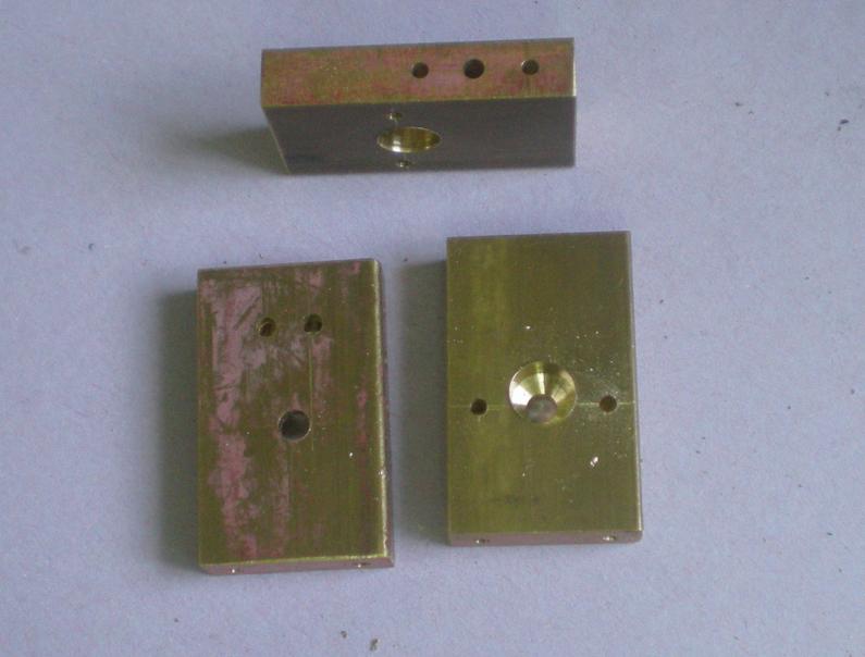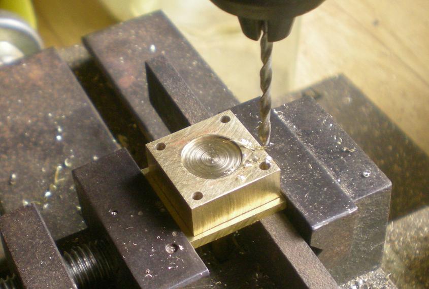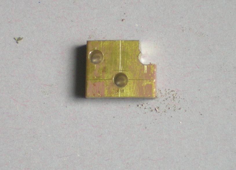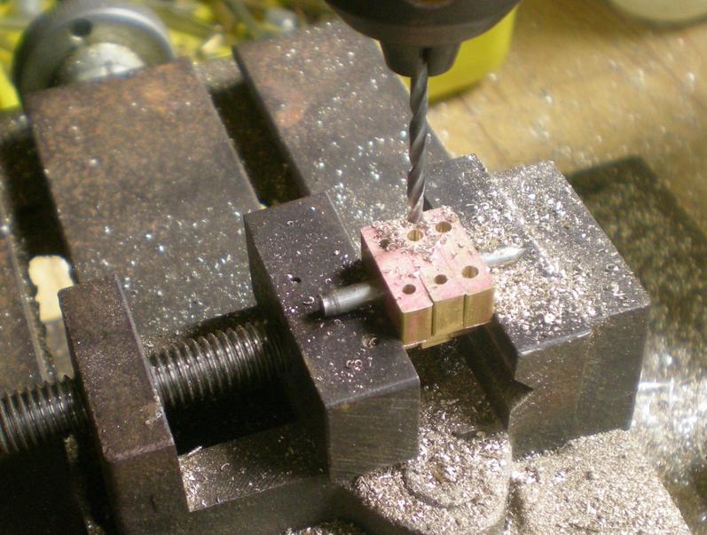| Il faut surtout se montrer attentif lors des perçages. Là aussi bien effectuer les montages dans l'étau et, indispensable le pinceau qu'on passe après chaque opération : la moindre limaille risquant de décaler notre pièce. |