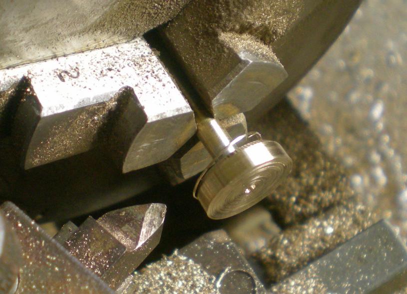 | Il ne reste plus qu'à reprendre au tour pour arriver à la bonne épaisseur, puis chauffer et enlever la bague terminée. |