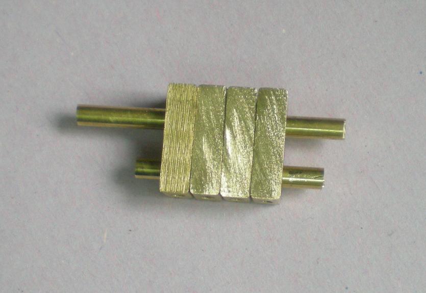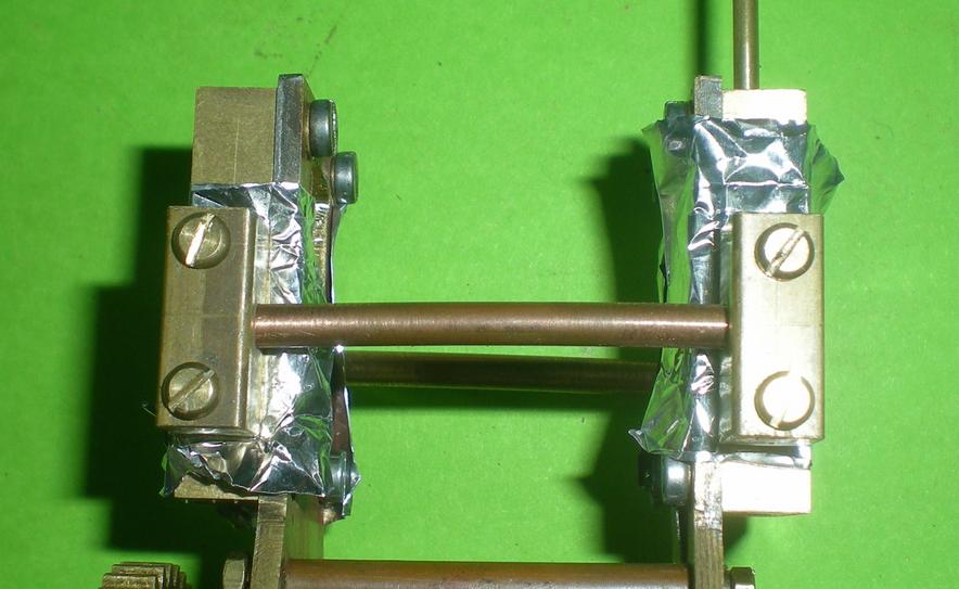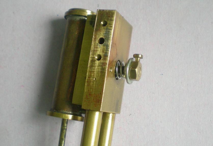 Cachez donc ces ressorts que je ne saurais voir ! Tube de 7 x 8 soudé à l'étain sur un feuille de laiton de 0.5, reprise au tour, perçage, mise à longueur ... |