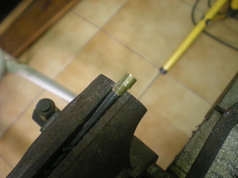 Faute de tube en laiton parfaitement calibré, il a fallu reprendre toutes les extrémités des tubes à l'aide d'un lime : reprise sur 2 mm environ avec essais pour que ça entre en forçant un peu. |
