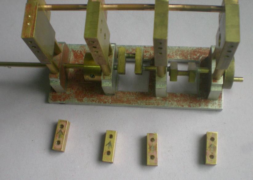 Pour obtenir nos trois moteurs, il ne reste plus qu'à, dans du rond de laiton de 5, usiner les 6 jambettes.