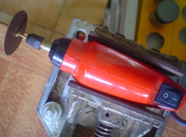 - placer dans l'étau la perceuse et le disque ordinaire à tronçonner