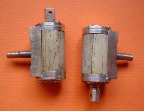 2 - le moteur démarre à l'air comprimé (généralement un peu trop de pression) mais ne veut plus rien savoir dès qu'on lui donne de la vapeur. Généralement, il s'agit d'un problème de ressort qu'on a tendance à trop serrer pensant ainsi réaliser un meilleur contact sabot - bâti. Après serrage on doit pouvoir, en tirant le cylindre vers l'extérieur, décoller le sabot du bâti d'environ 1 mm sans y apporter une force exceptionnelle. Ce réglage sera à revoir après le rodage.