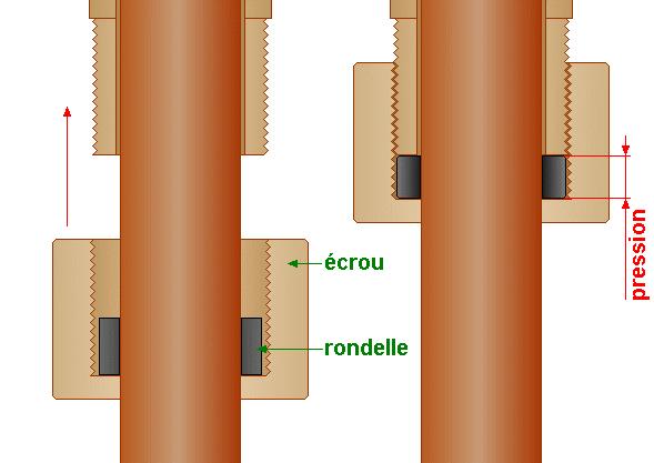 | | solution n°2 : joint torique dans une gorge ou encore téflon torsadé |  |