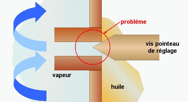 allo taote ? je consomme trop ... d'huile !Petit problème noté sur un forum , et que je venais de rencontrer. Tout comme cet intervenant, j'avais observé une diminution rapide de l'huile du graisseur. Pour le graisseur à déplacement, il est préconisé d'ouvrir la vis pointeau d'1/8ème ou 1/4 de tour, ce que j'avais fait ! Ma réponse : et si c'était l'usinage ? Si le pointeau se plaque mal sur le trou d'arrivée et de sortie de vapeur, l'ouverture devient trop grande, et l'huile en profite ... Solution : plutôt de refaire le graisseur, le laisser fermé ou ouvrir à peine et ... observer.