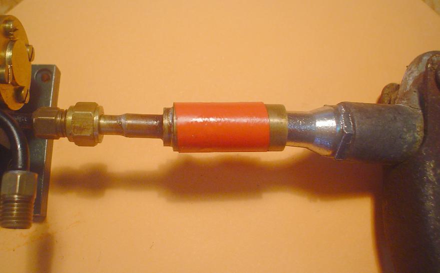 Confection d'un raccord a visser prolongé par un bout de tube dans lequel l'embout vient se placer ... contact correct assuré ! |
