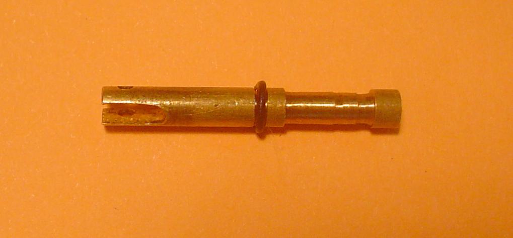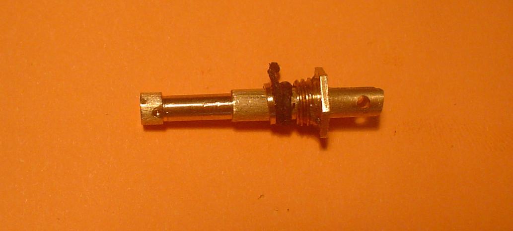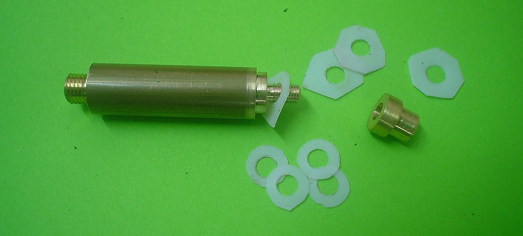 Lors d'un des premiers essais à l'air comprimé, blocage intempestif ! Démontage et mes rondelles de laiton et de téflon se promenaient gentiment dans le cylindre ! Le filet obtenu avec ma nouvelle filière était trop faible ...