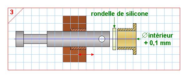| | solution n° 3 : joint silicone (reprendre le diamètre comme déjà décrit). Problème : au bout d'un certain temps de fonctionnement, ce joint durcit, ne remplit plus son rôle et il faut le changer ... |