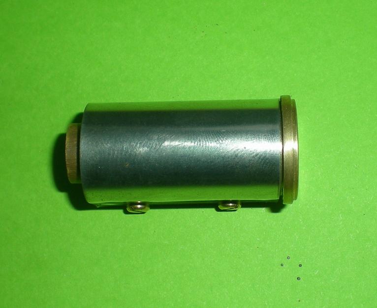 Notre enveloppe est prête et il suffira de l'enfiler sur le cylindre après avoir repris au cutter ou à la lime l'intérieur du haut (soudure étain du chapeau qui déborde un peu). |