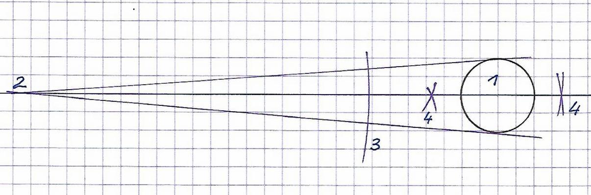 1 - perçage au diamètre de l'excentrique (ici 10) 2 - traçage des tangente et pointage 3 - arc de cercle coupant les tangentes 4 - recherche du centre à l'intérieur ou l'extérieur |